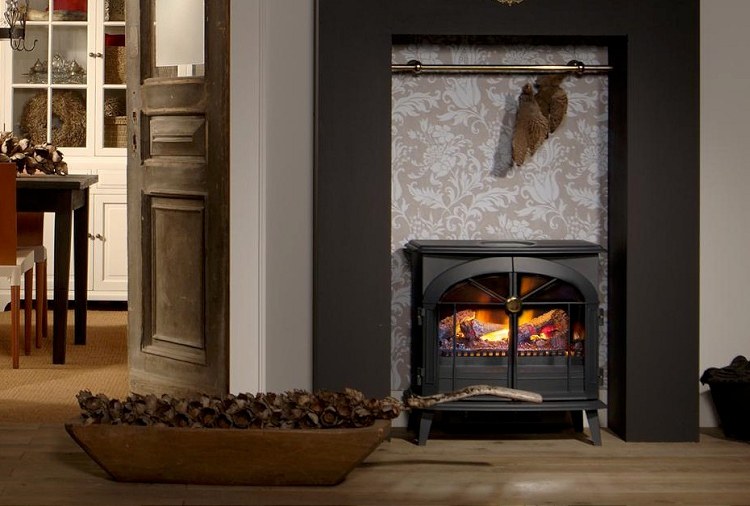 Klassieke vrijstaande elektrische haard met het Opti-myst systeem.