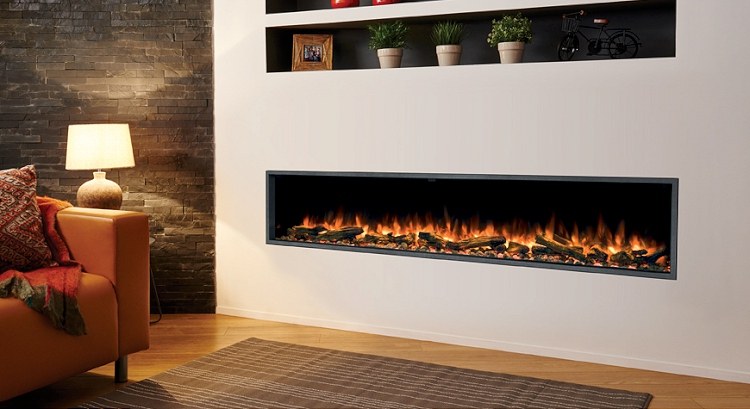 Strakke brede elektrische inbouwhaard met uniek vlammenspel! 2 kW