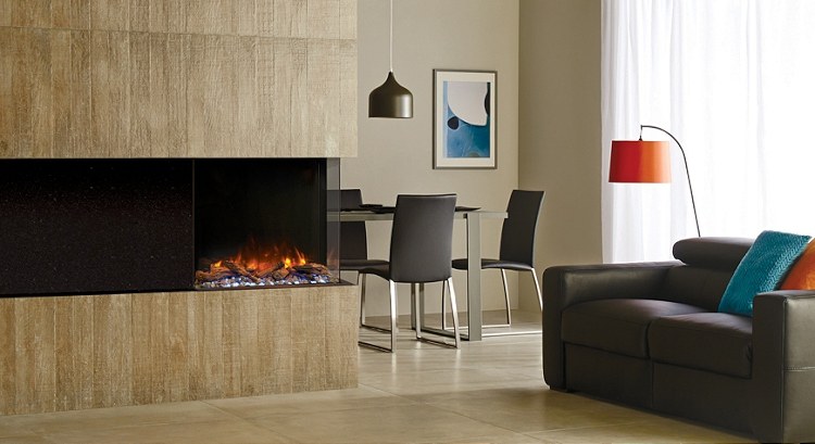 Met eReflex wandhaard kunt u zelf bepalen of u er een tweezijdige of driezijdige haard van maakt, door het glas krijgt u een panoramisch zicht op de verbluffende materialen die u op het brander bed kunt plaatsen.