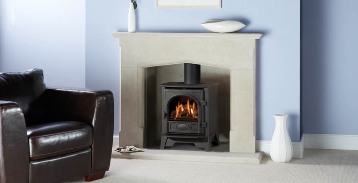 Met het gebruik van gietijzer voor de deur en dik zwaar staal voor de kast, combineren de Gazco Stockton kachels, eenvoudige, authentieke kachel ontwerpen met Gazco's ultra moderne 'levendige' vlammen techniek.