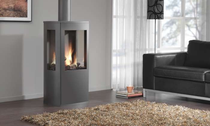 De Trio is een vrijstaande haard op gas met slanke vormen en een krachtige uitstraling. Zowel grote als kleine woonkamers kunnen worden voorzien van een prachtig middelpunt van vuur met 3-D-effect, zichtbaar vanuit meerdere posities.
