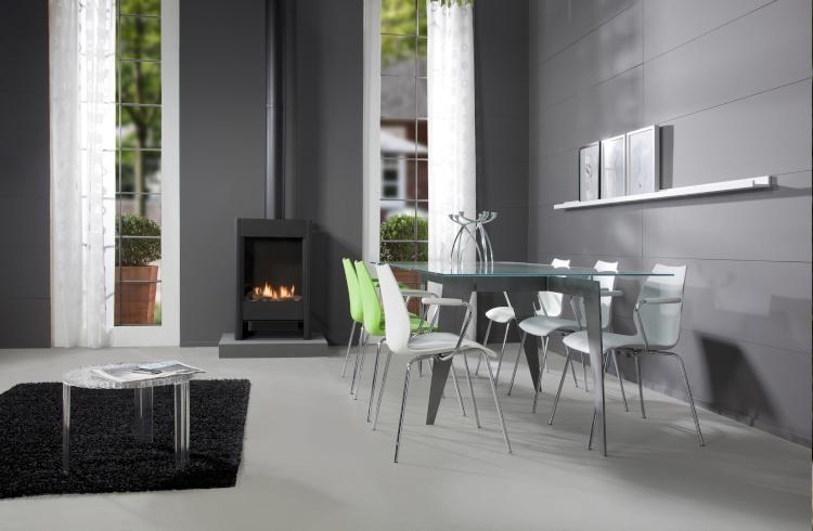 Vrijstaande haard met afstandsbediening.