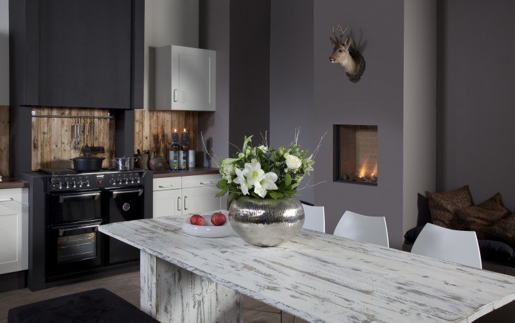 | Achterwand staal vlak (standaard) en steenmotief (optioneel) | |