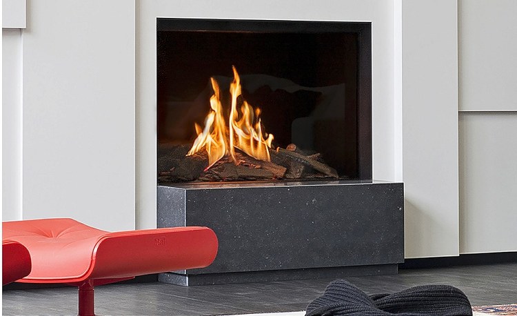 Driezijdige gashaard met een zeer realistisch vuurbeeld. 8.5 kW