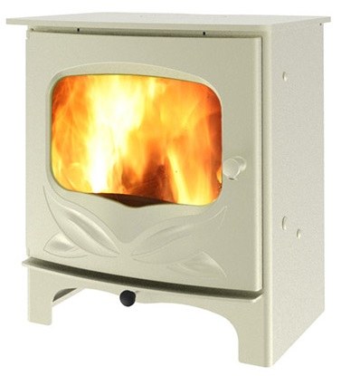 Stijlvolle Engelse houtkachel met een prachtige verbranding. De basis is van dik massief plaatstaal. De deur van Gietijzer.