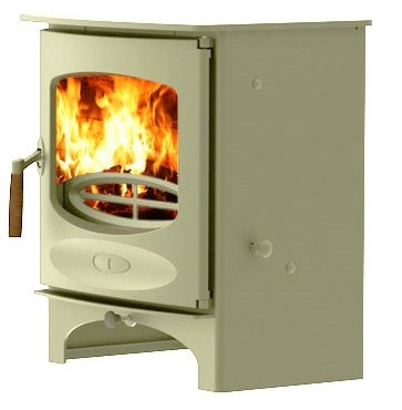 Kleine stijlvolle houtkachel voor een knusse woonkamer. De Ivoorkleur wordt in de loop der jaren iets donkerder van kleur op de hete gedeelten waardoor de kachel er nog mooier uit ziet!