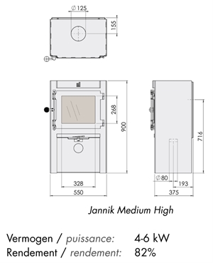 De Jannik Medium High heeft een groot glasoppervlak en doordoor veel zicht op het vuur. Met de soepele luchtschuif kan het vuur nauwkeurig worden geregeld. Voordeel is de ruimte onder kachel waar gemakkelijk hout gestapeld kan worden.