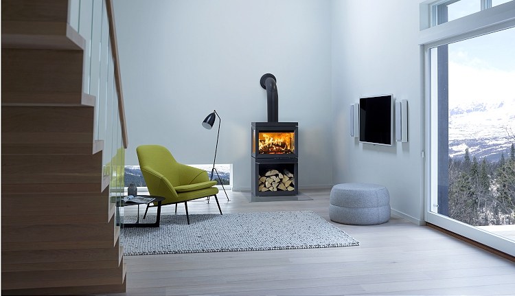 Nu aanbieding! Strakke houtkachel met zijglas en houtvak