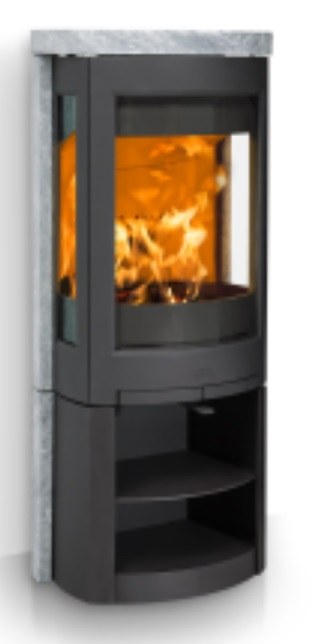 Zeer schone en werkelijk prachtige verbranding, een uniek ontwerp en strak gegoten gietijzer. Dat zijn de belangrijkste kenmerken van deze bekroonde houtkachel met speksteen zijpanelen bovenplaat en rooster!