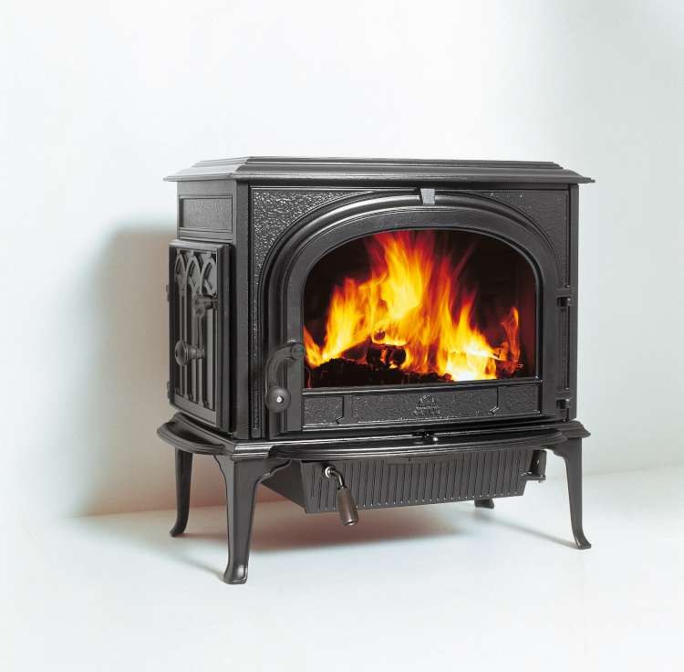 Klassieke geitijzeren kachel met veel vermogen.