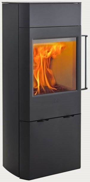 De Scan 41 is een middelgrote kachel met een grote glazen deur aan de voorkant.