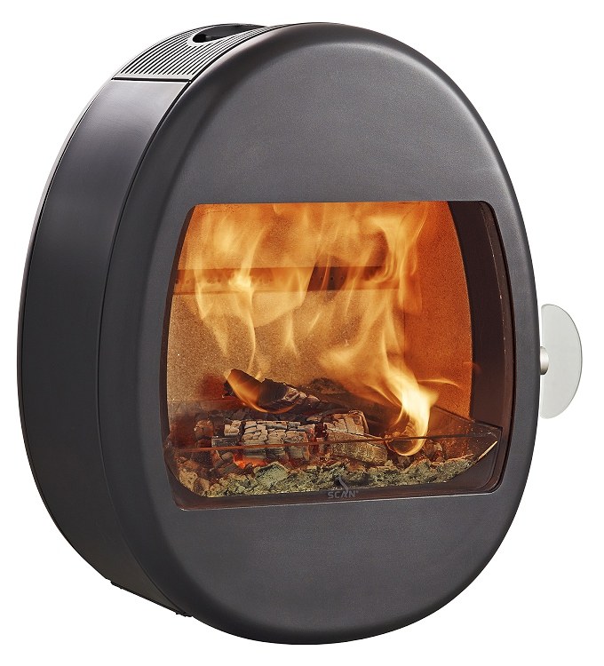 Ook de handgreep om de gietijzeren deur te openen is gemaakt van glas. Mat glas. De luchtregeling is discreet geplaatst aan de achterzijde van de haard. Deze glazen schuiven laten uw Scan 66 erg mooi branden.