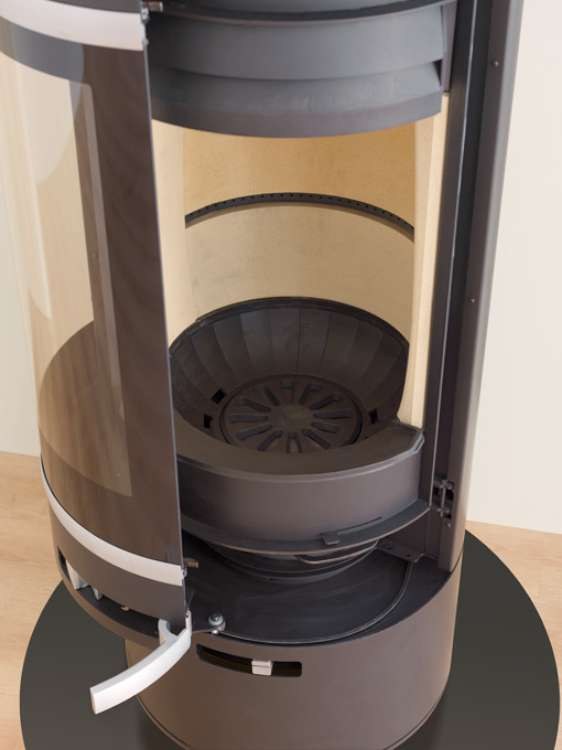 Het ontwerp van de verbrandingskamer creëert de illusie van een ’grot’ waarin het vuur zichtbaar is. Het schitterende zicht op het