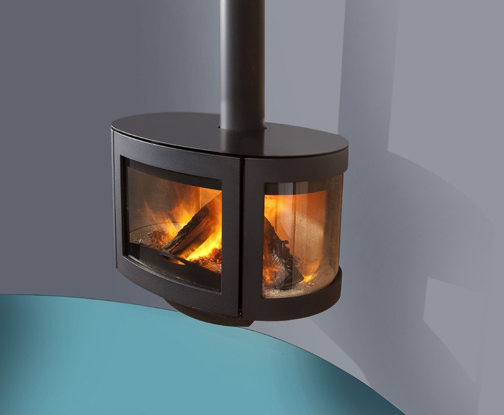 3 zijdige houtkachel met prachtige rondingen