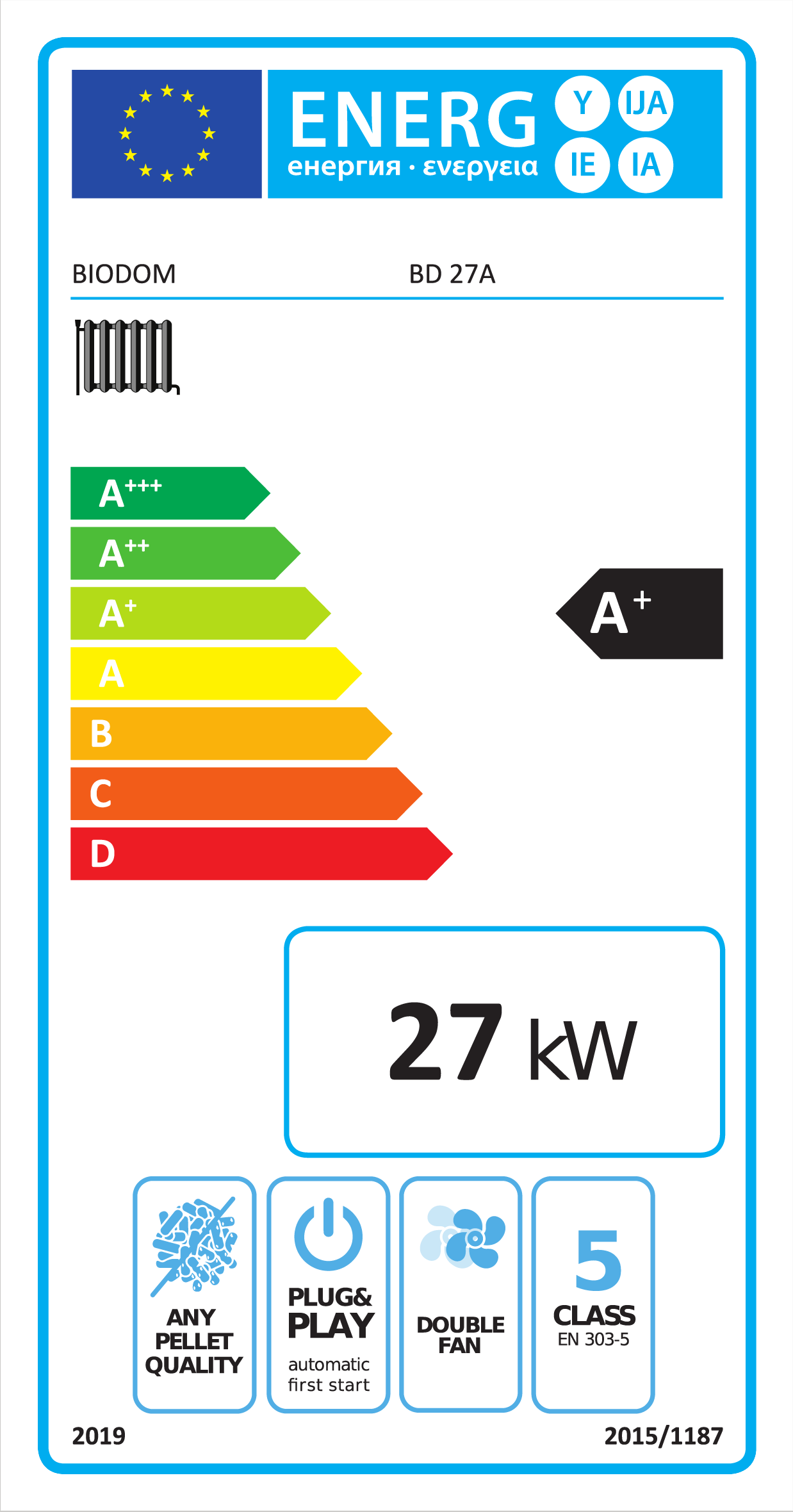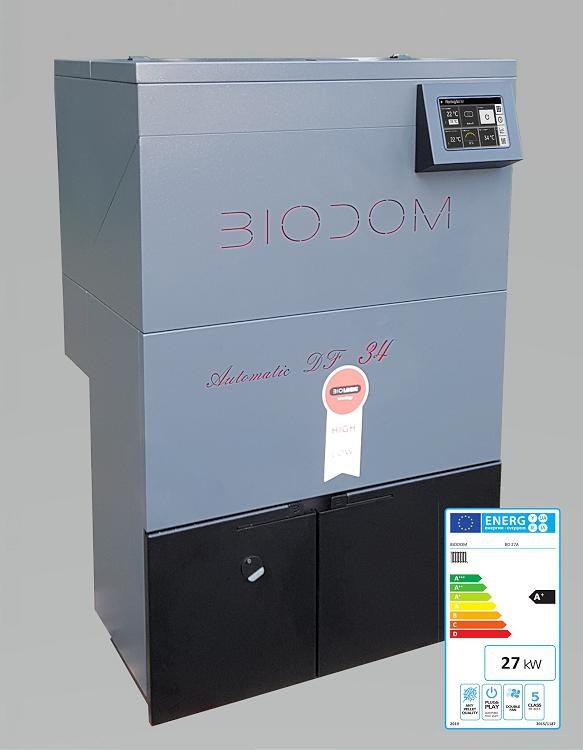 De BIODOM 27-A is een volautomatische pelletketel en heeft door zijn hoge rendement zeer lage emissies, is hierdoor zeer milieu vriendelijk en heeft een mooi functioneel design. De BIODOM 27 – A moduleert tussen de 7,5 en 26,5 kW en kan een oppervlak van 80 – 400 m² verwarmen. De pelletketel heeft een rendement van 91%. De afmetingen zijn 150 x 100 x 66 cm (H x B x D). Meldcode: KA07662