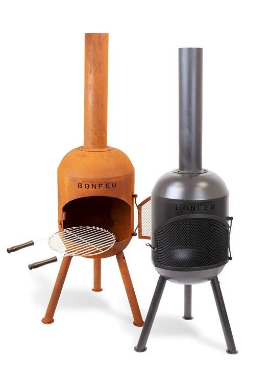 De BonSolo haard is speciaal ontworpen voor gebruik op terras of gazon. De Bonfeu-haard staat op drie stevige poten die uitschuifbaar zijn. Hij is gemaakt van staal en heeft een hittebestendige coating om de haard te beschermen. Door zijn vorm en hoge kachelpijp heeft de BonSolo een uitstekende rookafvoer en is een grote warmteafgifte gegarandeerd. Als de haard goed is opgewarmd, koelt hij slechts langzaam af, wat een constante warmteafgifte garandeert. De BonSolo is gemaakt van staal. Staal heeft de eigenschap om, onder vochtige omstandigheden, te gaan roesten. Houd er dus rekening mee dat je BonFeu-haard gaat roesten. Dit proces kan vrij snel plaatsvinden. Maar geen paniek, dit geeft jouw BonFeu haard zijn robuuste en stoere uiterlijk!