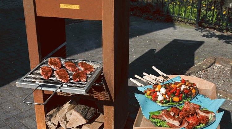 De fraai ontworpen JAbq tuinhaard is een kachel die optimale warmte biedt en naar wens ook gebruikt kan worden als barbecue.