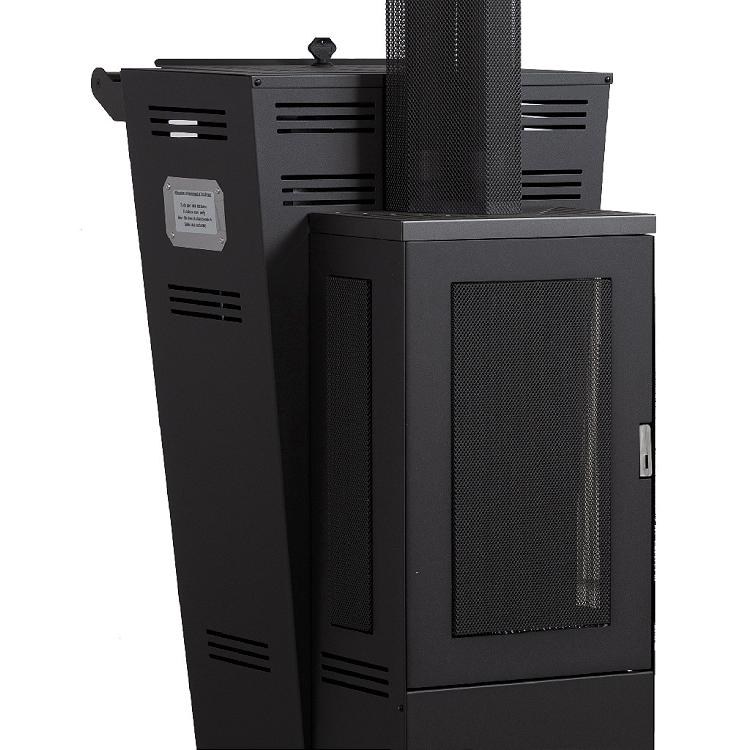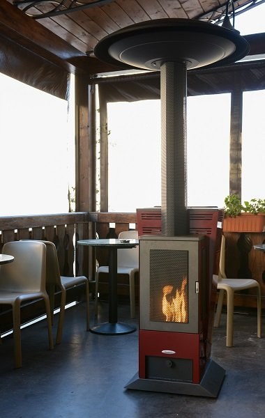 Voorzien van warmteverdelingskap (parasol) die gelijk de rook afvoert.